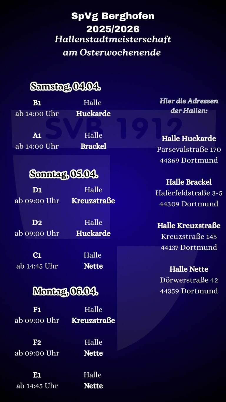 Mit vielen Mannschaften sind wir in den Hallen unterwegs und freuen uns über jeden Berghofer, der uns unterstützt. Kommt vorbei, feuert unsere Teams an und erlebt spannende Spiele!
